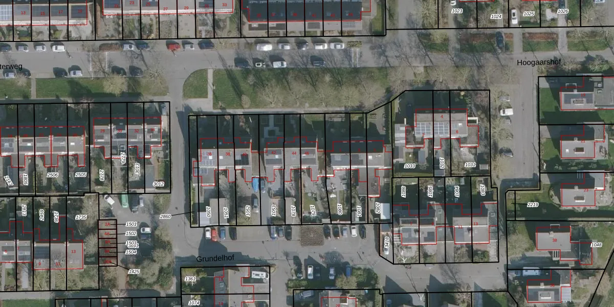 Gebruik de zoekbalk of klik op een perceel voor informatie over de adressen binnen dit perceel.