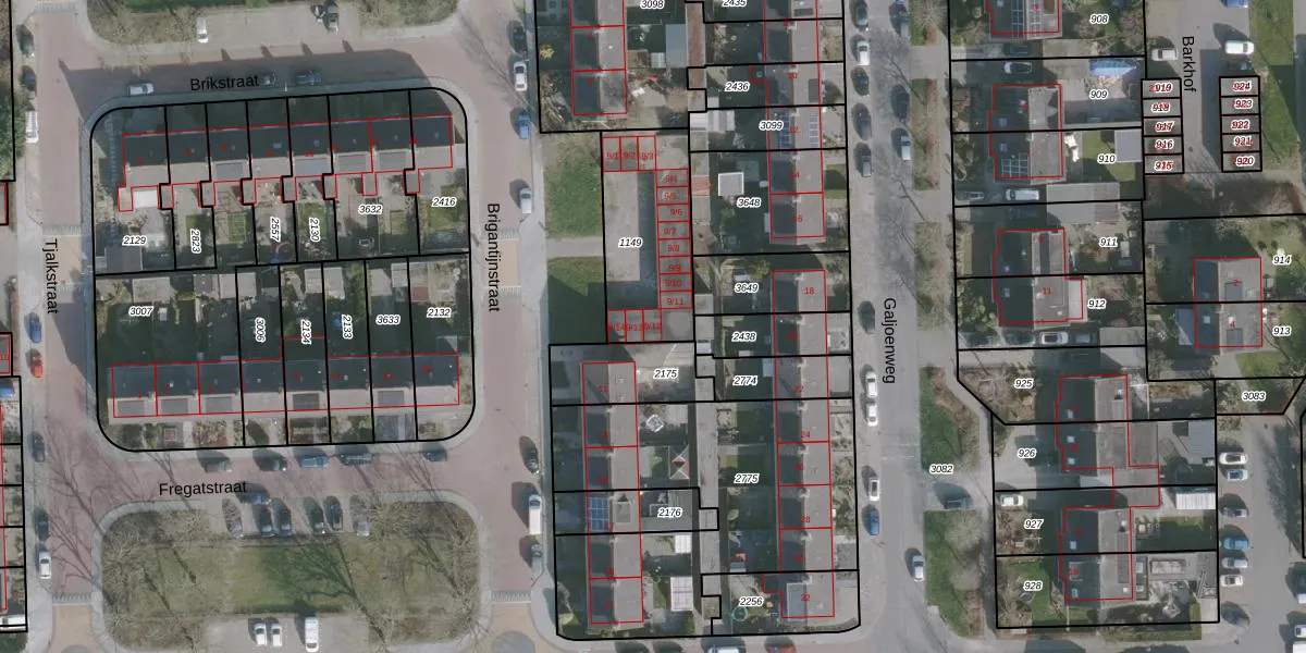 Het perceel waarop Brigantijnstraat 9-12 staat heeft een oppervlakte van 440 m². Dit is een groot perceel. De perceeloppervlakte wordt geregistreerd door het Kadaster. Gedetailleerde informatie over de maten van dit perceel kunt u vinden in het rapport Kadastrale kaart met maatvoering van Brigantijnstraat 9-12.