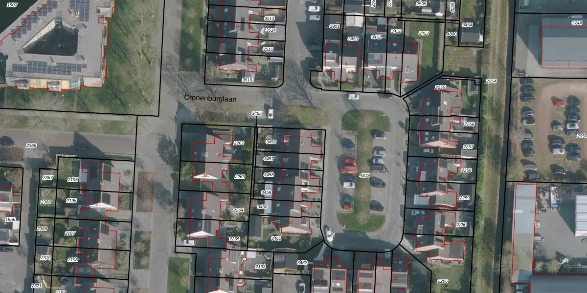 Cronenburglaan 2 is gelegen op kadastraal perceel HLG02B3456. Deze kadastrale aanduiding is uniek en wordt gebruikt door het Kadaster om eigendomsrechten en andere zakelijke rechten vast te leggen. Het perceel maakt onderdeel uit van de kadastrale gemeente Harlingen.