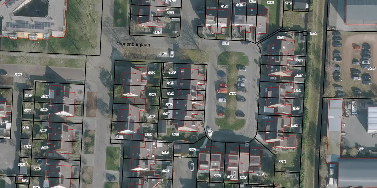 Cronenburglaan 6 is gelegen op kadastraal perceel HLG02B3458. Deze kadastrale aanduiding is uniek en wordt gebruikt door het Kadaster om eigendomsrechten en andere zakelijke rechten vast te leggen. Het perceel maakt onderdeel uit van de kadastrale gemeente Harlingen.