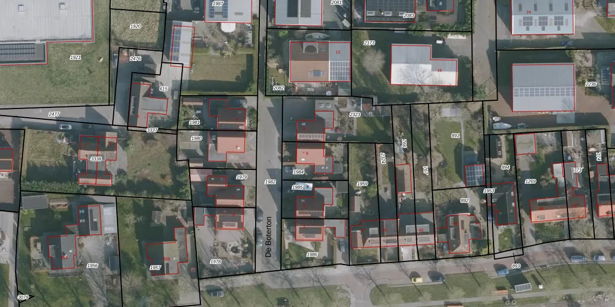 Gebruik de zoekbalk of klik op een perceel voor informatie over de adressen binnen dit perceel.