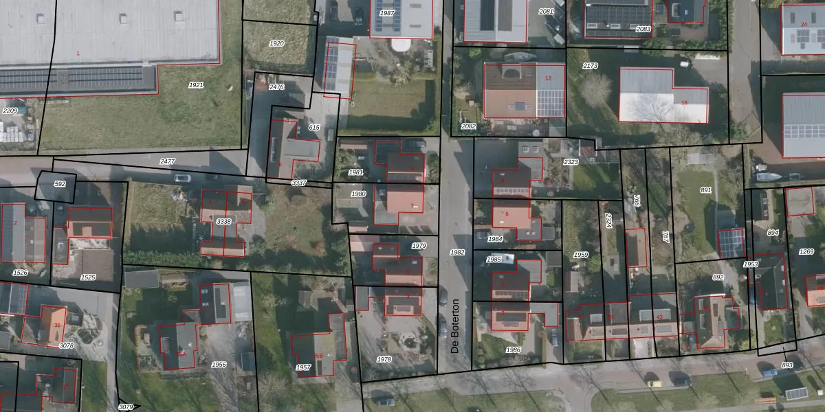 Het perceel waarop De Boterton 7 staat heeft een oppervlakte van 314 m². Dit is een groot perceel. De perceeloppervlakte wordt geregistreerd door het Kadaster. Gedetailleerde informatie over de maten van dit perceel kunt u vinden in het rapport Kadastrale kaart met maatvoering van De Boterton 7.