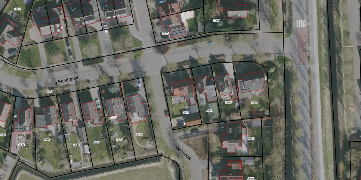 Gebruik de zoekbalk of klik op een perceel voor informatie over de adressen binnen dit perceel.