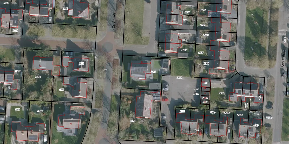 Het perceel waarop De Spiker 21 staat heeft een oppervlakte van 703 m². Dit is een groot perceel. De perceeloppervlakte wordt geregistreerd door het Kadaster. Gedetailleerde informatie over de maten van dit perceel kunt u vinden in het rapport Kadastrale kaart met maatvoering van De Spiker 21.