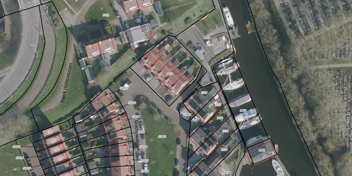 Grachtswalplein 45 is gelegen op kadastraal perceel HLG02A9970. Deze kadastrale aanduiding is uniek en wordt gebruikt door het Kadaster om eigendomsrechten en andere zakelijke rechten vast te leggen. Het perceel maakt onderdeel uit van de kadastrale gemeente Harlingen.