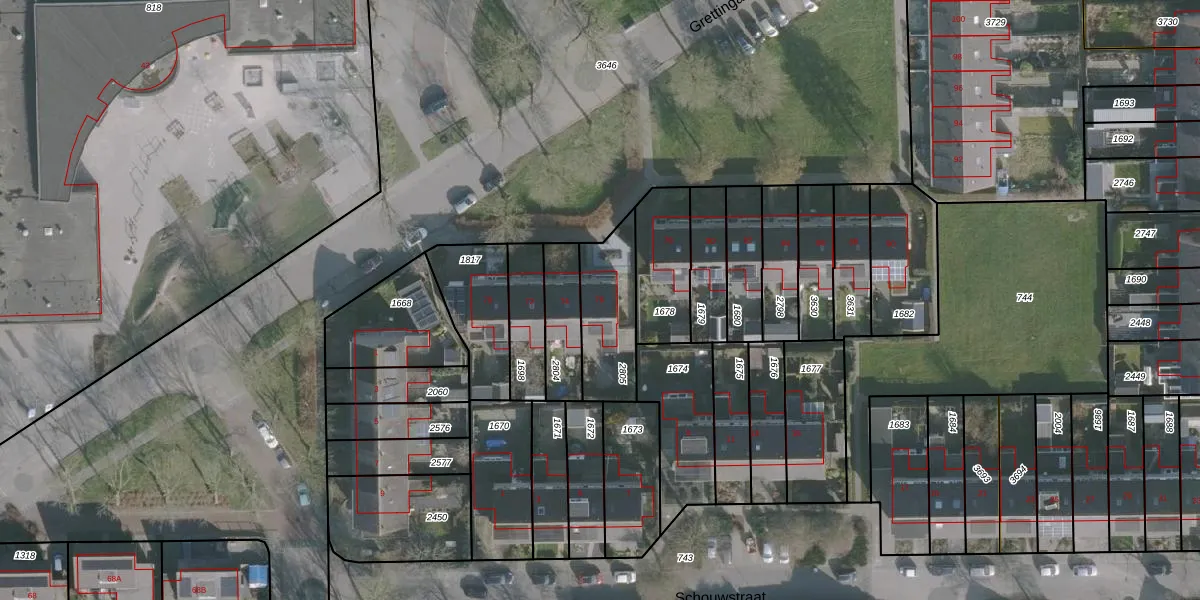 Het perceel waarop Grettingalaan 76 staat heeft een oppervlakte van 259 m². Dit is een middelgroot perceel. De perceeloppervlakte wordt geregistreerd door het Kadaster. Gedetailleerde informatie over de maten van dit perceel kunt u vinden in het rapport Kadastrale kaart met maatvoering van Grettingalaan 76.