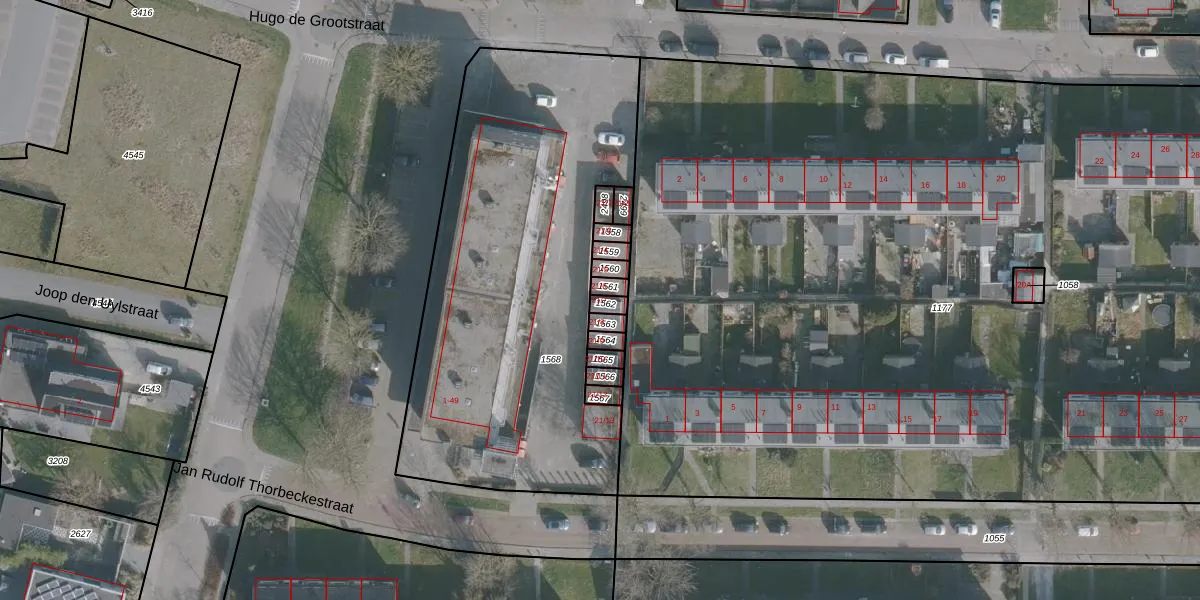 Gebruik de zoekbalk of klik op een perceel voor informatie over de adressen binnen dit perceel.
