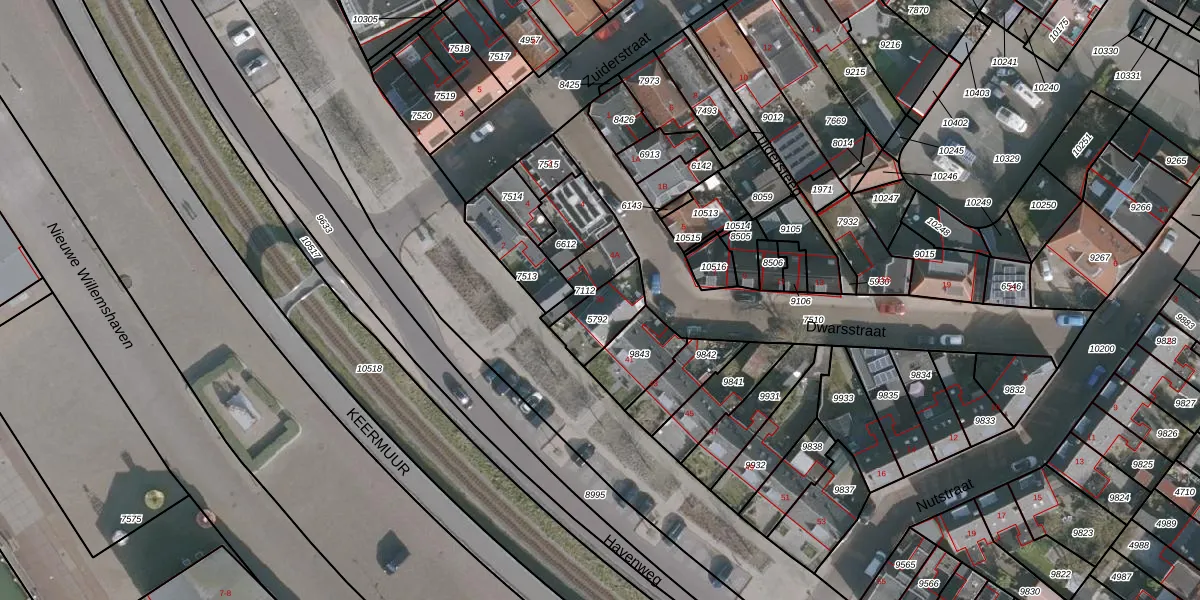 Gebruik de zoekbalk of klik op een perceel voor informatie over de adressen binnen dit perceel.