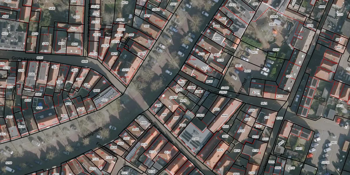 Het perceel waarop Heiligeweg 42 staat heeft een oppervlakte van 48 m². Dit is een klein perceel. De perceeloppervlakte wordt geregistreerd door het Kadaster. Gedetailleerde informatie over de maten van dit perceel kunt u vinden in het rapport Kadastrale kaart met maatvoering van Heiligeweg 42.