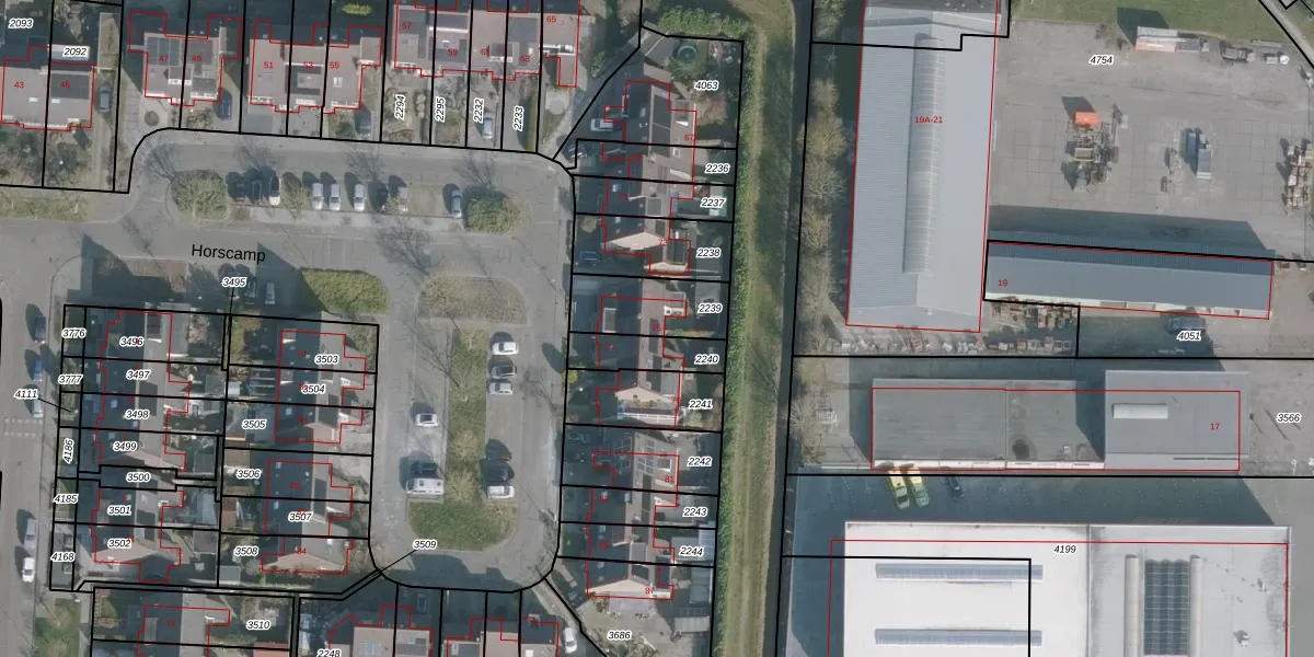 Het perceel waarop Horscamp 75 staat heeft een oppervlakte van 220 m². Dit is een middelgroot perceel. De perceeloppervlakte wordt geregistreerd door het Kadaster. Gedetailleerde informatie over de maten van dit perceel kunt u vinden in het rapport Kadastrale kaart met maatvoering van Horscamp 75.