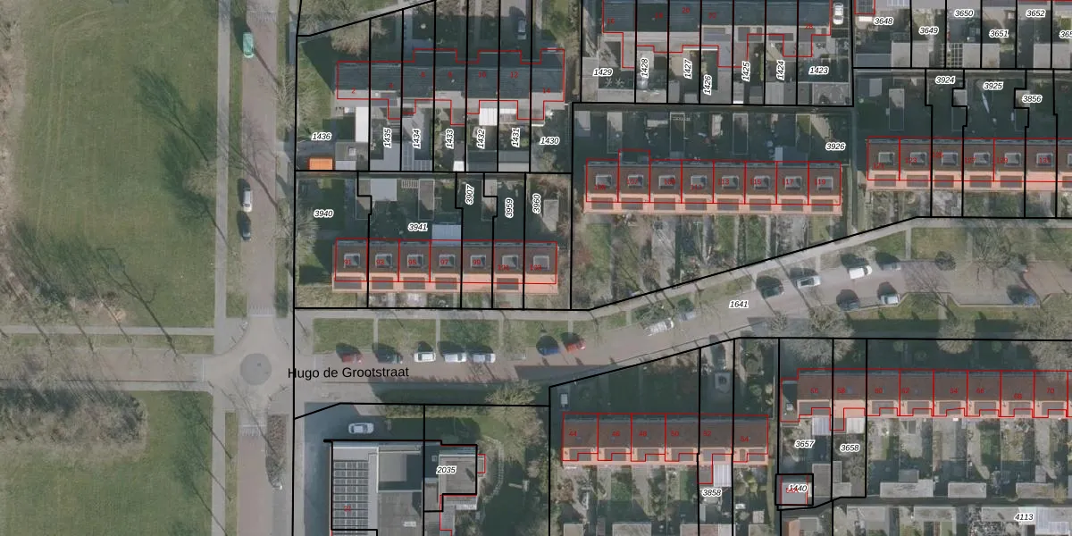 Het perceel waarop Hugo de Grootstraat 103 staat heeft een oppervlakte van 225 m². Dit is een middelgroot perceel. De perceeloppervlakte wordt geregistreerd door het Kadaster. Gedetailleerde informatie over de maten van dit perceel kunt u vinden in het rapport Kadastrale kaart met maatvoering van Hugo de Grootstraat 103.