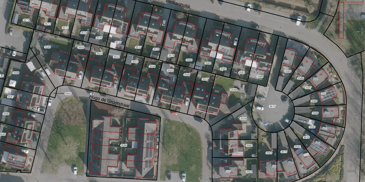 Hugo de Grootstraat 53 is gelegen op kadastraal perceel HLG02B3556. Deze kadastrale aanduiding is uniek en wordt gebruikt door het Kadaster om eigendomsrechten en andere zakelijke rechten vast te leggen. Het perceel maakt onderdeel uit van de kadastrale gemeente Harlingen.