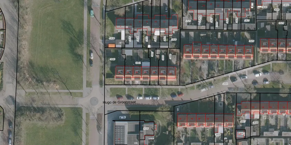 Het perceel waarop Hugo de Grootstraat 97 staat heeft een oppervlakte van 447 m². Dit is een groot perceel. De perceeloppervlakte wordt geregistreerd door het Kadaster. Gedetailleerde informatie over de maten van dit perceel kunt u vinden in het rapport Kadastrale kaart met maatvoering van Hugo de Grootstraat 97.