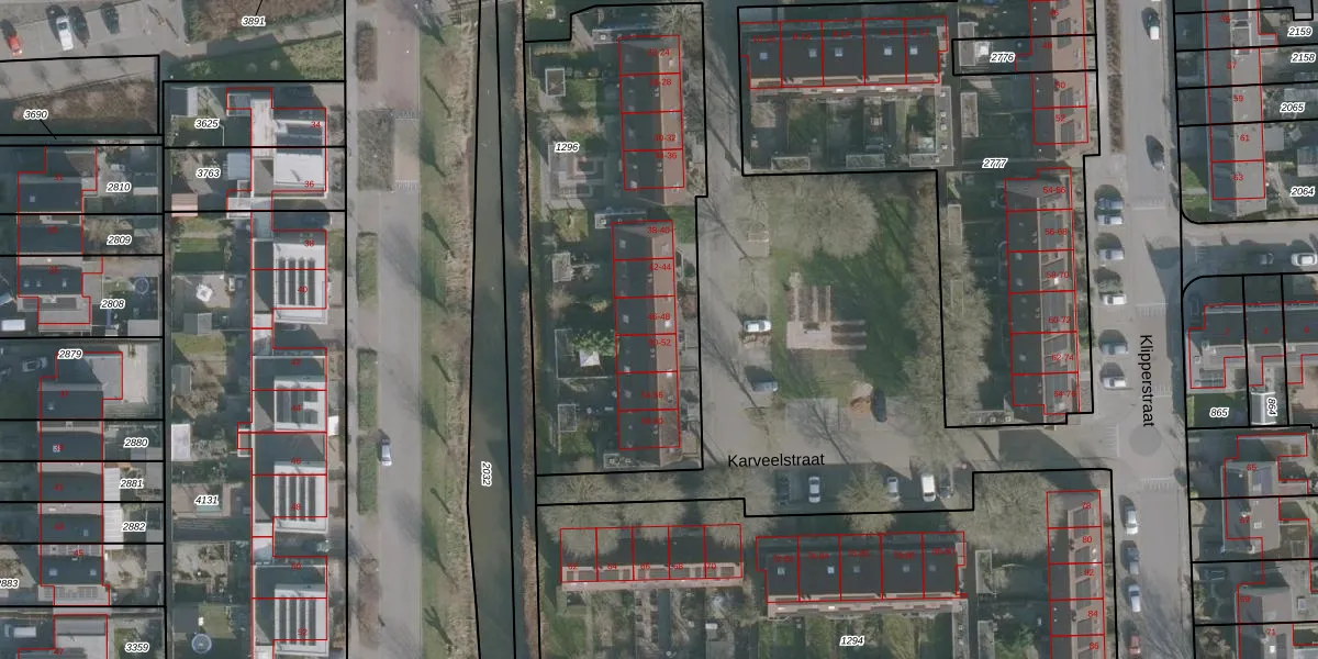 Het perceel waarop Karveelstraat 48 staat heeft een oppervlakte van 1815 m². Dit is een zeer groot perceel. De perceeloppervlakte wordt geregistreerd door het Kadaster. Gedetailleerde informatie over de maten van dit perceel kunt u vinden in het rapport Kadastrale kaart met maatvoering van Karveelstraat 48.