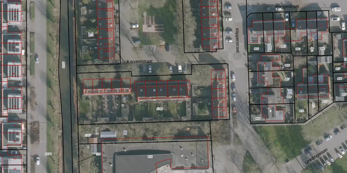 Het perceel waarop Karveelstraat 78 staat heeft een oppervlakte van 2565 m². Dit is een zeer groot perceel. De perceeloppervlakte wordt geregistreerd door het Kadaster. Gedetailleerde informatie over de maten van dit perceel kunt u vinden in het rapport Kadastrale kaart met maatvoering van Karveelstraat 78.