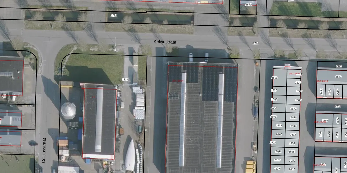 Het perceel waarop Kelvinstraat 22-9 staat heeft een oppervlakte van 5430 m². Dit is een zeer groot perceel. De perceeloppervlakte wordt geregistreerd door het Kadaster. Gedetailleerde informatie over de maten van dit perceel kunt u vinden in het rapport Kadastrale kaart met maatvoering van Kelvinstraat 22-9.