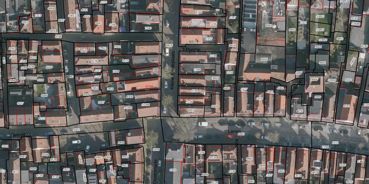 Gebruik de zoekbalk of klik op een perceel voor informatie over de adressen binnen dit perceel.