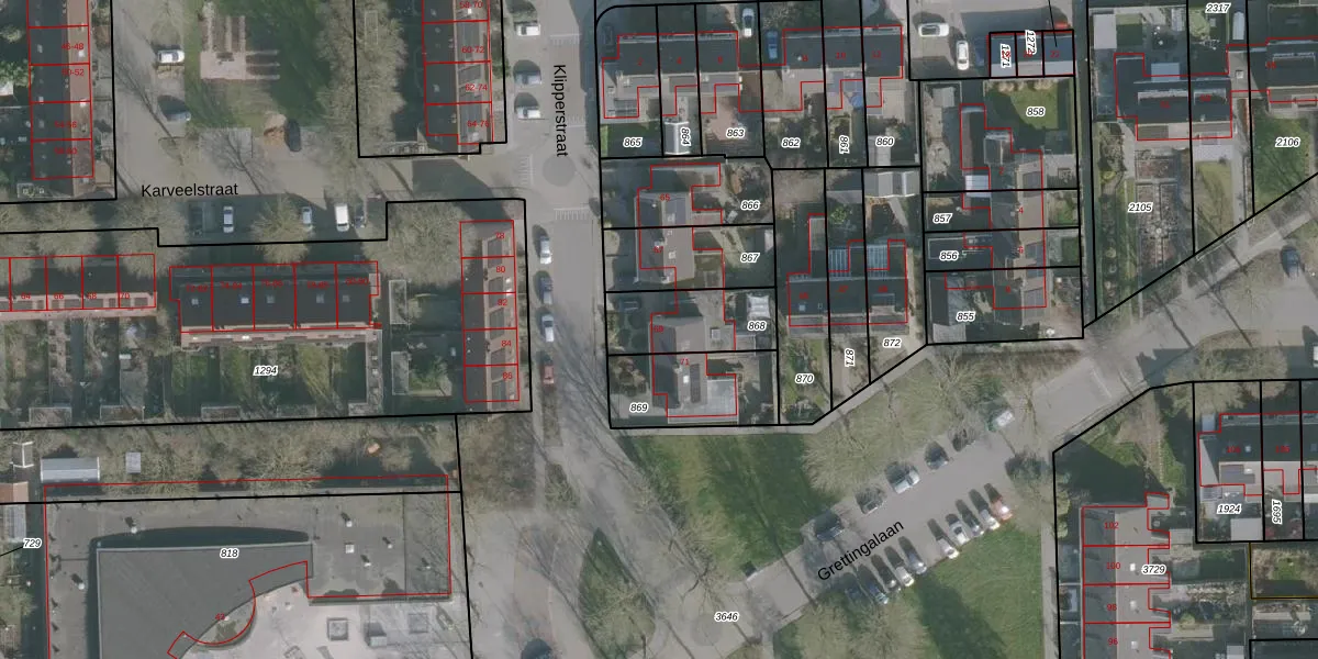 Gebruik de zoekbalk of klik op een perceel voor informatie over de adressen binnen dit perceel.