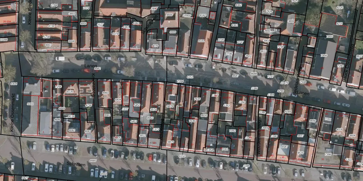Gebruik de zoekbalk of klik op een perceel voor informatie over de adressen binnen dit perceel.