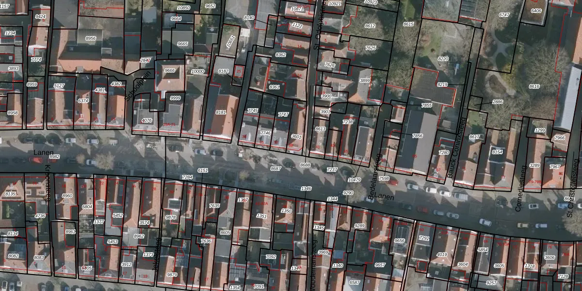 Het perceel waarop Lanen 39 staat heeft een oppervlakte van 96 m². Dit is een klein perceel. De perceeloppervlakte wordt geregistreerd door het Kadaster. Gedetailleerde informatie over de maten van dit perceel kunt u vinden in het rapport Kadastrale kaart met maatvoering van Lanen 39.