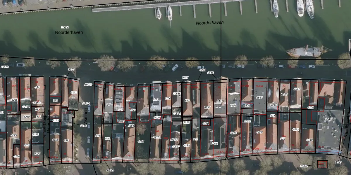 Het perceel waarop Noorderhaven 54 staat heeft een oppervlakte van 83 m². Dit is een klein perceel. De perceeloppervlakte wordt geregistreerd door het Kadaster. Gedetailleerde informatie over de maten van dit perceel kunt u vinden in het rapport Kadastrale kaart met maatvoering van Noorderhaven 54.