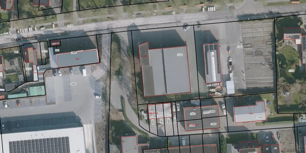 Het perceel waarop Oude Trekweg 48 staat heeft een oppervlakte van 1996 m². Dit is een zeer groot perceel. De perceeloppervlakte wordt geregistreerd door het Kadaster. Gedetailleerde informatie over de maten van dit perceel kunt u vinden in het rapport Kadastrale kaart met maatvoering van Oude Trekweg 48.