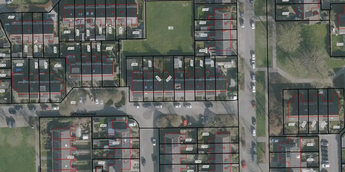 Gebruik de zoekbalk of klik op een perceel voor informatie over de adressen binnen dit perceel.