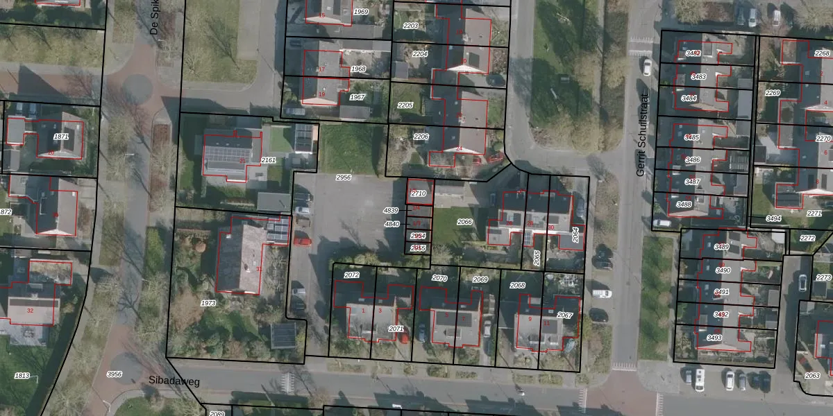 Het perceel waarop Sibadaweg 1-4 staat heeft een oppervlakte van 19 m². Dit is een klein perceel. De perceeloppervlakte wordt geregistreerd door het Kadaster. Gedetailleerde informatie over de maten van dit perceel kunt u vinden in het rapport Kadastrale kaart met maatvoering van Sibadaweg 1-4.