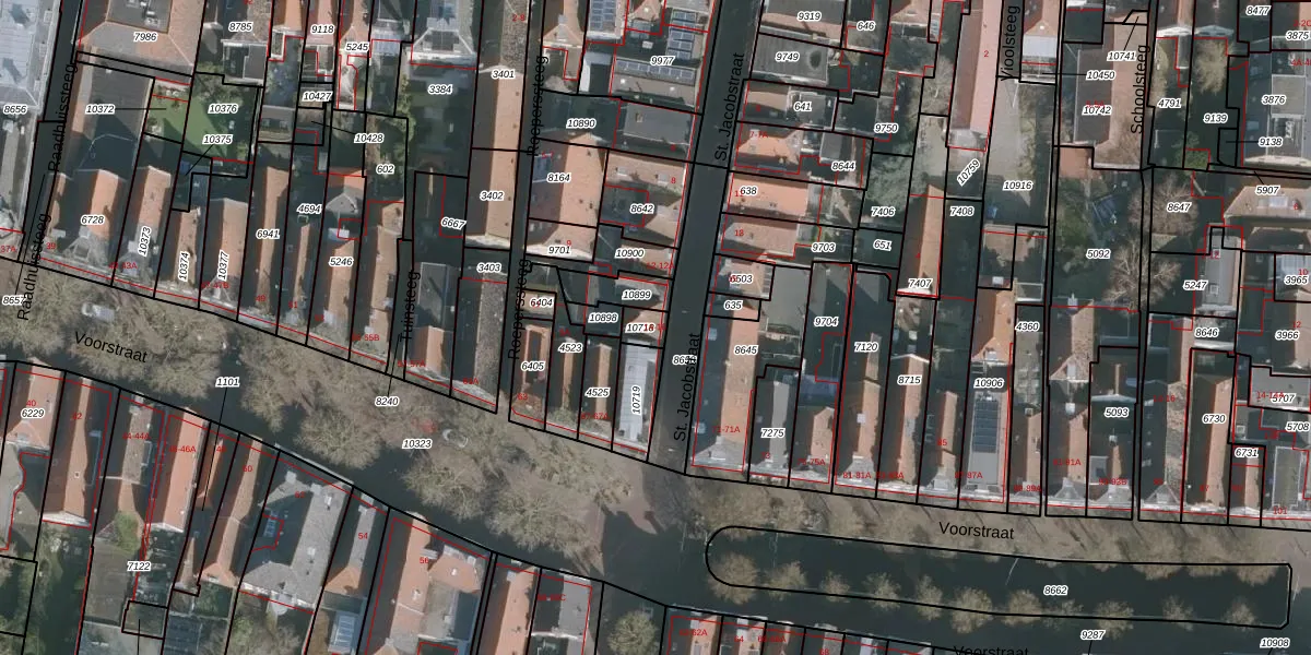Het perceel waarop St. Jacobstraat 14 staat heeft een oppervlakte van 38 m². Dit is een klein perceel. De perceeloppervlakte wordt geregistreerd door het Kadaster. Gedetailleerde informatie over de maten van dit perceel kunt u vinden in het rapport Kadastrale kaart met maatvoering van St. Jacobstraat 14.