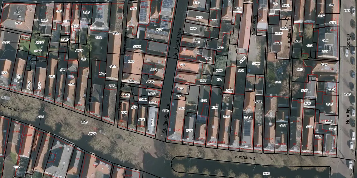 St. Jacobstraat 15 is gelegen op kadastraal perceel HLG02A6503. Deze kadastrale aanduiding is uniek en wordt gebruikt door het Kadaster om eigendomsrechten en andere zakelijke rechten vast te leggen. Het perceel maakt onderdeel uit van de kadastrale gemeente Harlingen.