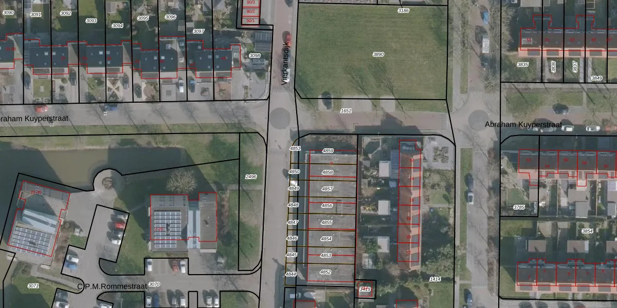 Het perceel waarop Vierkantsdijk 13-A staat heeft een oppervlakte van 189 m². Dit is een middelgroot perceel. De perceeloppervlakte wordt geregistreerd door het Kadaster. Gedetailleerde informatie over de maten van dit perceel kunt u vinden in het rapport Kadastrale kaart met maatvoering van Vierkantsdijk 13-A.