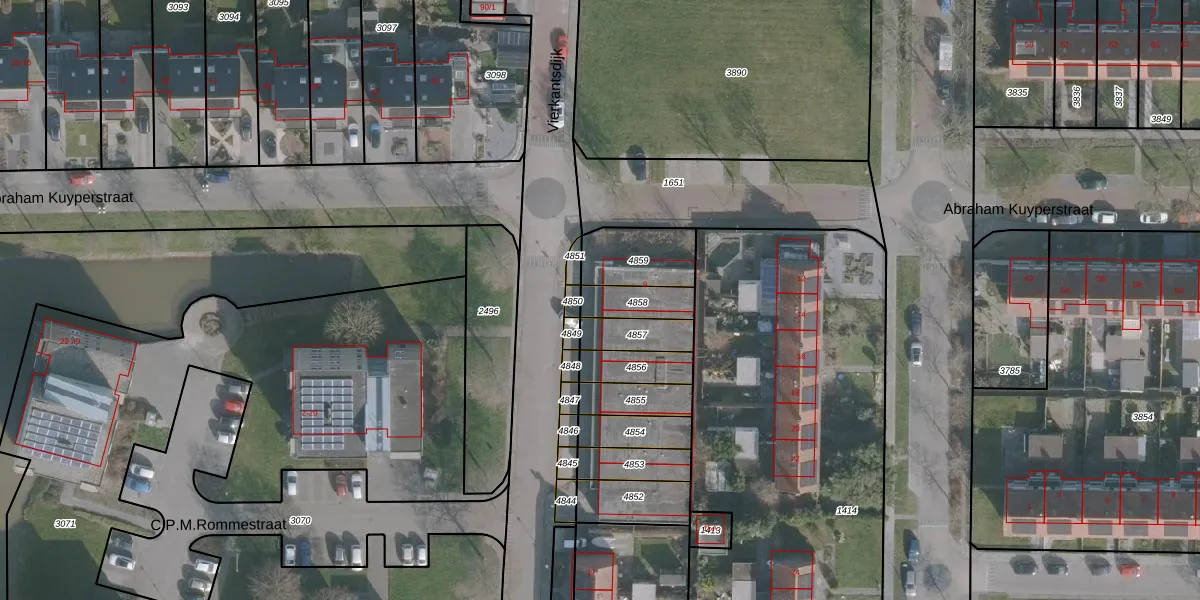 Het perceel waarop Vierkantsdijk 13-B staat heeft een oppervlakte van 106 m². Dit is een middelgroot perceel. De perceeloppervlakte wordt geregistreerd door het Kadaster. Gedetailleerde informatie over de maten van dit perceel kunt u vinden in het rapport Kadastrale kaart met maatvoering van Vierkantsdijk 13-B.