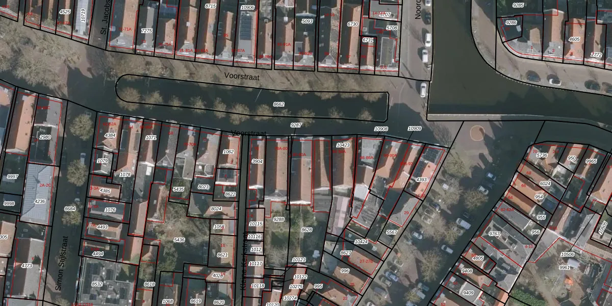 Het perceel waarop Voorstraat 80-A staat heeft een oppervlakte van 550 m². Dit is een groot perceel. De perceeloppervlakte wordt geregistreerd door het Kadaster. Gedetailleerde informatie over de maten van dit perceel kunt u vinden in het rapport Kadastrale kaart met maatvoering van Voorstraat 80-A.
