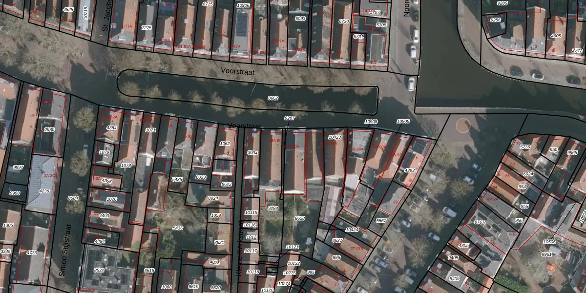 Het perceel waarop Voorstraat 80 staat heeft een oppervlakte van 550 m². Dit is een groot perceel. De perceeloppervlakte wordt geregistreerd door het Kadaster. Gedetailleerde informatie over de maten van dit perceel kunt u vinden in het rapport Kadastrale kaart met maatvoering van Voorstraat 80.