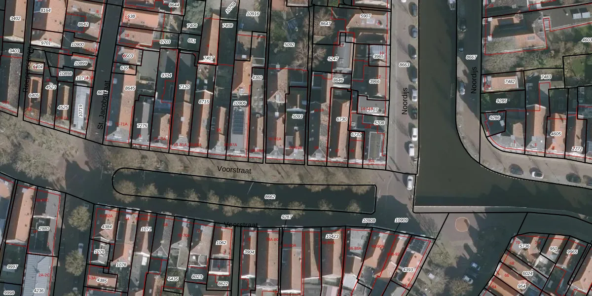 Het perceel waarop Voorstraat 93 staat heeft een oppervlakte van 185 m². Dit is een middelgroot perceel. De perceeloppervlakte wordt geregistreerd door het Kadaster. Gedetailleerde informatie over de maten van dit perceel kunt u vinden in het rapport Kadastrale kaart met maatvoering van Voorstraat 93.