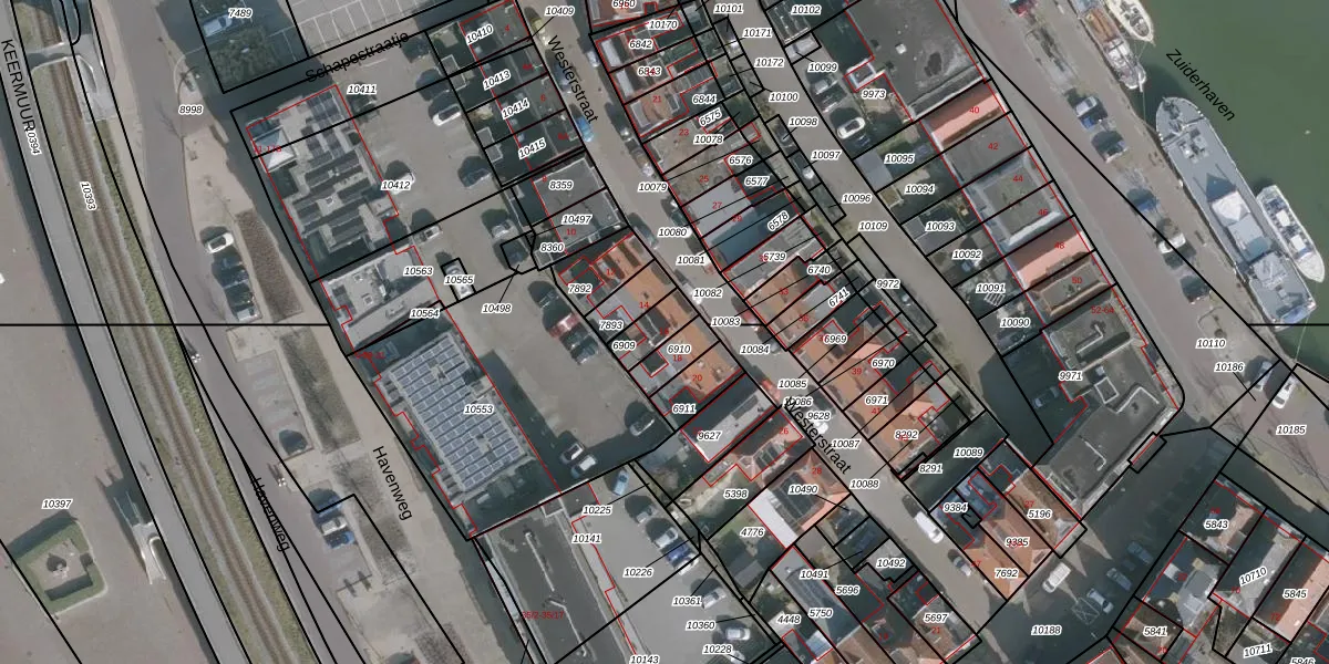 Het adres ligt op het perceel HLG02-A-6909, dat zich in de kadastrale gemeente Harlingen bevindt. Het perceel is kleiner dan gemiddeld in Harlingen. Het perceel is 72 m² groot, terwijl het gemiddelde ligt op 4,1 ha. Het kleinste perceel in de kadastrale gemeente is 0 m² groot. De grootste perceeloppervlakte is 94,95 km². Er zijn geen andere adressen aanwezig op het perceel. De laatste wijziging in het de Basisregistratie Kadaster (BRK) was op 01-07-2002.