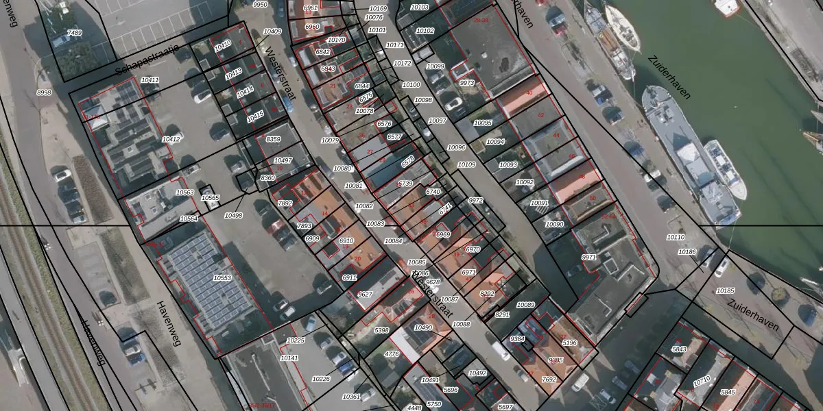 Gebruik de zoekbalk of klik op een perceel voor informatie over de adressen binnen dit perceel.