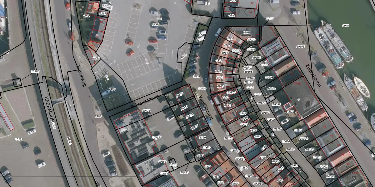 Het perceel waarop het adres ligt is HLG02-A-10410. De afkorting 'HLG02' staat voor kadastrale gemeente Harlingen. De gemiddelde perceelgrootte in Harlingen is 4,1 ha. Dit perceel is kleiner: de perceeloppervlakte bedraagt 104 m². Het grootste perceel in de kadastrale gemeente is 94,95 km². Het kleinste perceel heeft een oppervlakte van 0 m². Er zijn geen andere adressen aanwezig op het perceel. De laatste wijziging in het de Basisregistratie Kadaster (BRK) was op 13-03-2012.