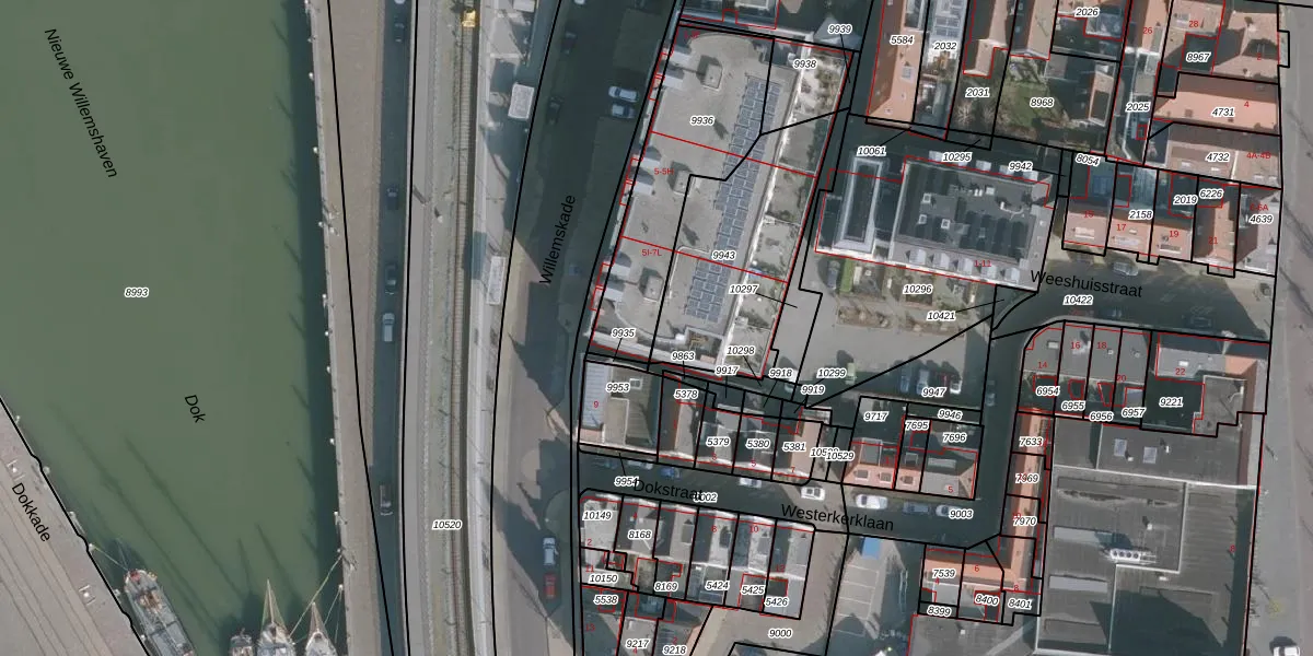 Het perceel waarop Willemskade 7-C staat heeft een oppervlakte van 609 m². Dit is een groot perceel. De perceeloppervlakte wordt geregistreerd door het Kadaster. Gedetailleerde informatie over de maten van dit perceel kunt u vinden in het rapport Kadastrale kaart met maatvoering van Willemskade 7-C.