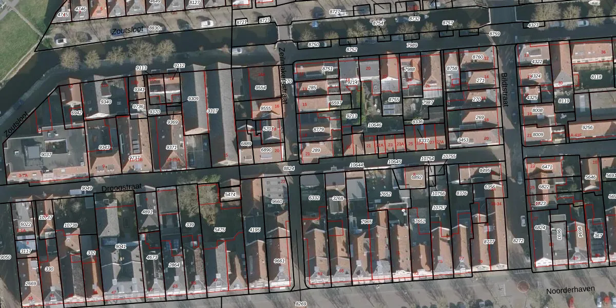 Gebruik de zoekbalk of klik op een perceel voor informatie over de adressen binnen dit perceel.
