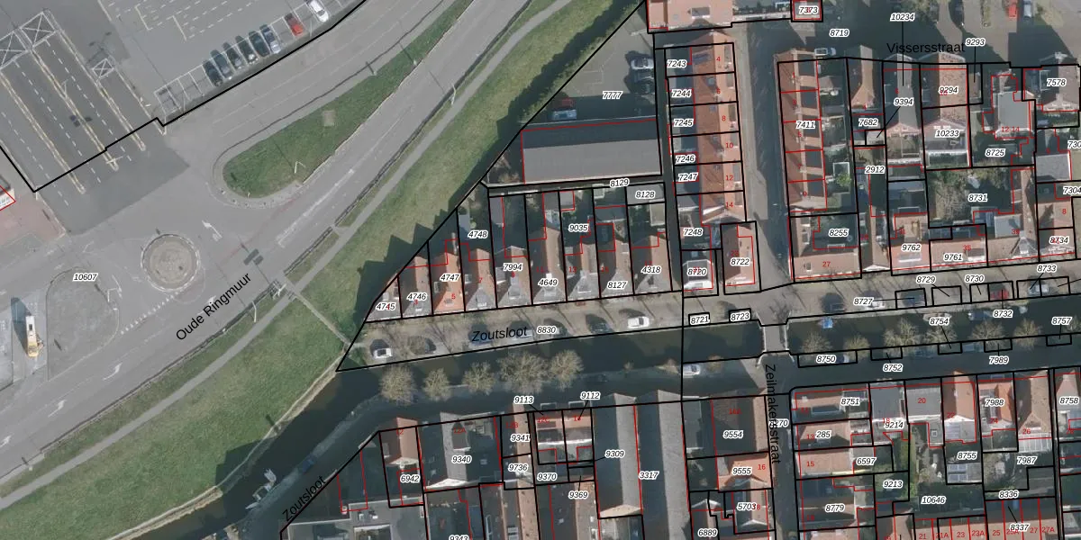 Gebruik de zoekbalk of klik op een perceel voor informatie over de adressen binnen dit perceel.