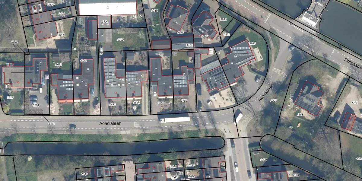 Het perceel waarop Acacialaan 6 staat heeft een oppervlakte van 418 m². Dit is een groot perceel. De perceeloppervlakte wordt geregistreerd door het Kadaster. Gedetailleerde informatie over de maten van dit perceel kunt u vinden in het rapport Kadastrale kaart met maatvoering van Acacialaan 6.