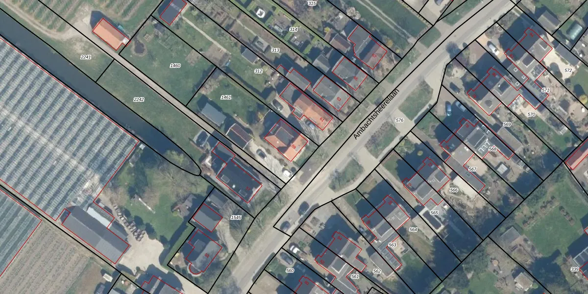 Ambachtsheerelaan 59 is gelegen op kadastraal perceel HML01L1461. Deze kadastrale aanduiding is uniek en wordt gebruikt door het Kadaster om eigendomsrechten en andere zakelijke rechten vast te leggen. Het perceel maakt onderdeel uit van de kadastrale gemeente Harmelen.