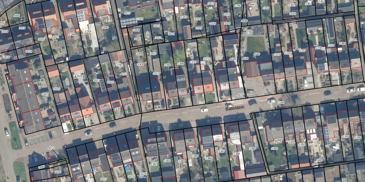Het perceel waarop Batestein 24 staat heeft een oppervlakte van 259 m². Dit is een middelgroot perceel. De perceeloppervlakte wordt geregistreerd door het Kadaster. Gedetailleerde informatie over de maten van dit perceel kunt u vinden in het rapport Kadastrale kaart met maatvoering van Batestein 24.