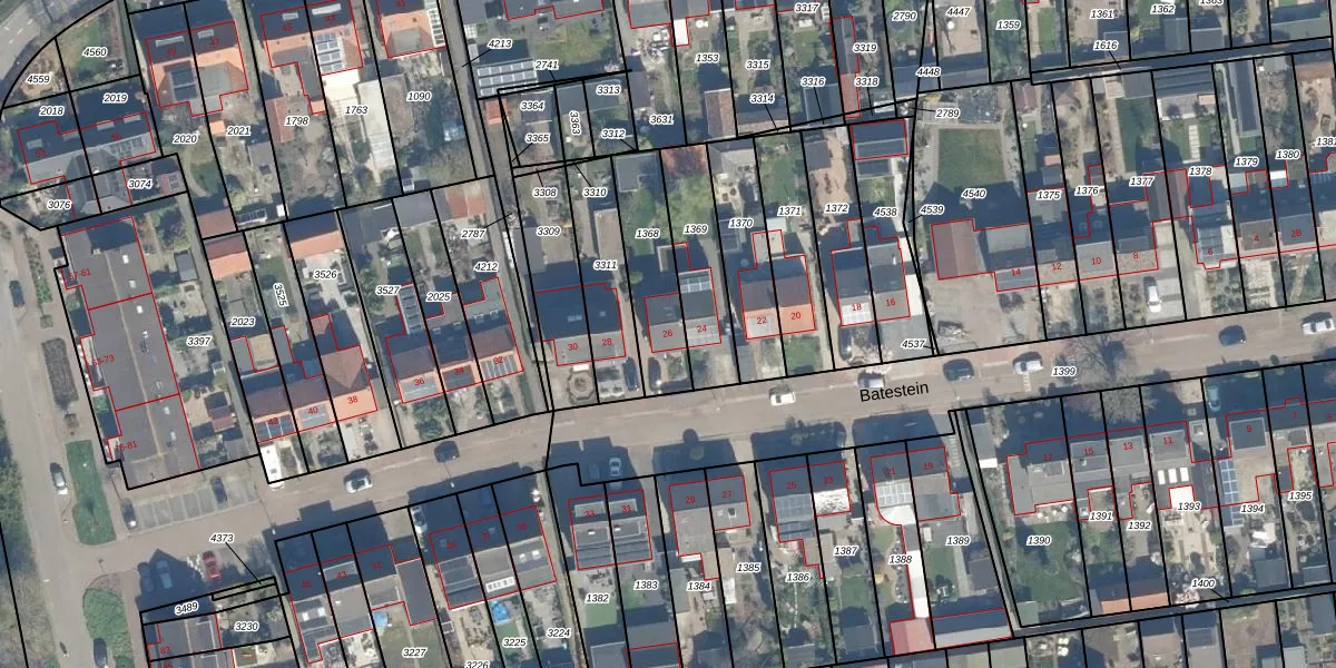 Het perceel waarop Batestein 26 staat heeft een oppervlakte van 262 m². Dit is een middelgroot perceel. De perceeloppervlakte wordt geregistreerd door het Kadaster. Gedetailleerde informatie over de maten van dit perceel kunt u vinden in het rapport Kadastrale kaart met maatvoering van Batestein 26.