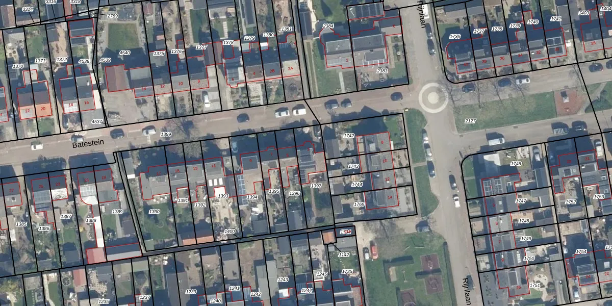 Het perceel waarop Batestein 3 staat heeft een oppervlakte van 300 m². Dit is een groot perceel. De perceeloppervlakte wordt geregistreerd door het Kadaster. Gedetailleerde informatie over de maten van dit perceel kunt u vinden in het rapport Kadastrale kaart met maatvoering van Batestein 3.