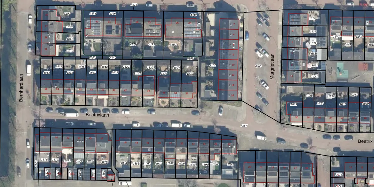 Beatrixlaan 32 is gelegen op kadastraal perceel HML01B1825. Deze kadastrale aanduiding is uniek en wordt gebruikt door het Kadaster om eigendomsrechten en andere zakelijke rechten vast te leggen. Het perceel maakt onderdeel uit van de kadastrale gemeente Harmelen.
