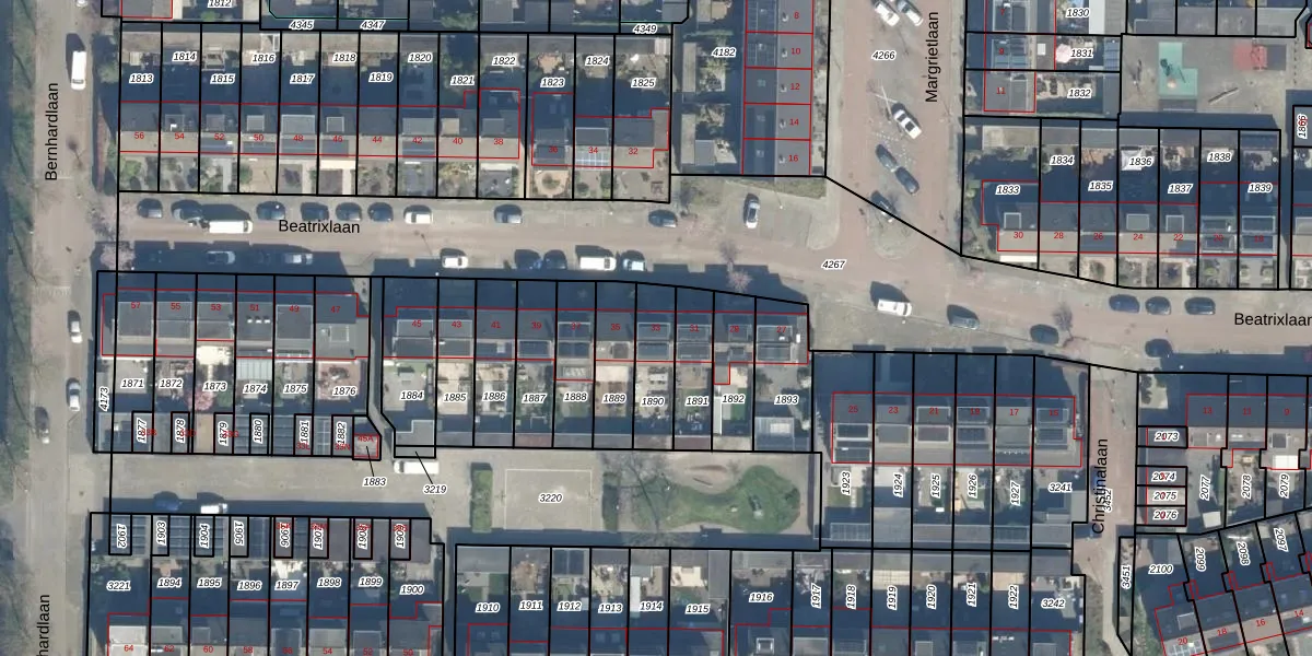 Beatrixlaan 33 is gelegen op kadastraal perceel HML01B1890. Deze kadastrale aanduiding is uniek en wordt gebruikt door het Kadaster om eigendomsrechten en andere zakelijke rechten vast te leggen. Het perceel maakt onderdeel uit van de kadastrale gemeente Harmelen.