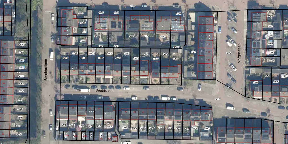 Het perceel waarop Beatrixlaan 38 staat heeft een oppervlakte van 180 m². Dit is een middelgroot perceel. De perceeloppervlakte wordt geregistreerd door het Kadaster. Gedetailleerde informatie over de maten van dit perceel kunt u vinden in het rapport Kadastrale kaart met maatvoering van Beatrixlaan 38.