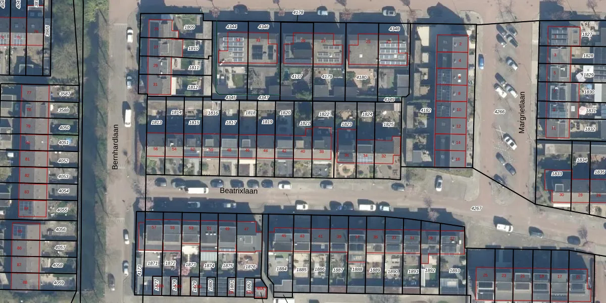 Beatrixlaan 40 is gelegen op kadastraal perceel HML01B1821. Deze kadastrale aanduiding is uniek en wordt gebruikt door het Kadaster om eigendomsrechten en andere zakelijke rechten vast te leggen. Het perceel maakt onderdeel uit van de kadastrale gemeente Harmelen.